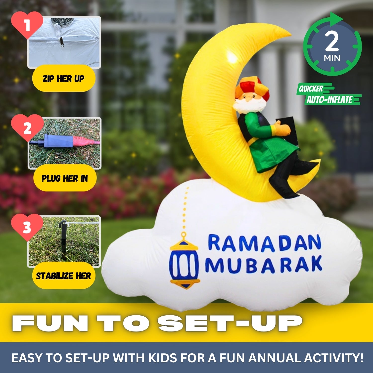 6FT Ramadan Inflatable - Reversible Crescent Moon on Cloud