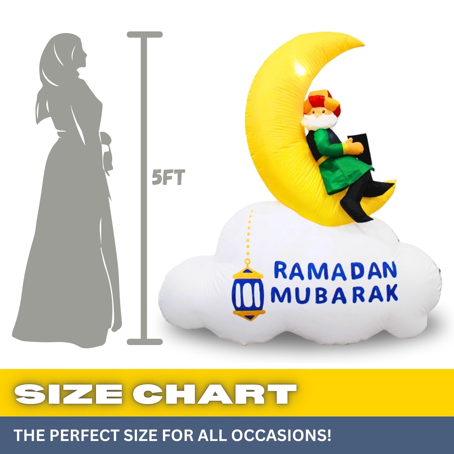 5FT Ramadan Inflatable - Man Reading Quran on Crescent Moon